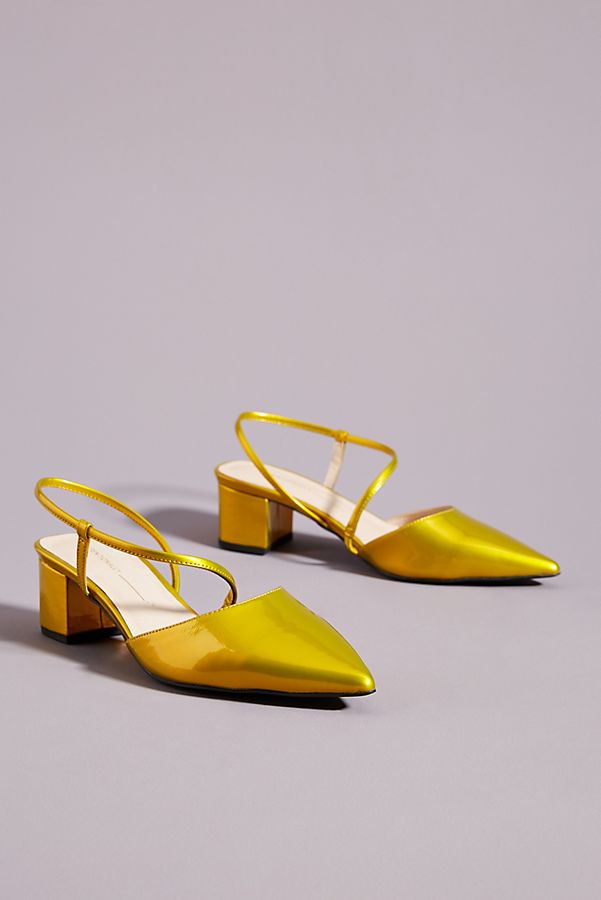Intentionally Blank Anthropologie Viv Metallic Heels, $, available at Anthropologie