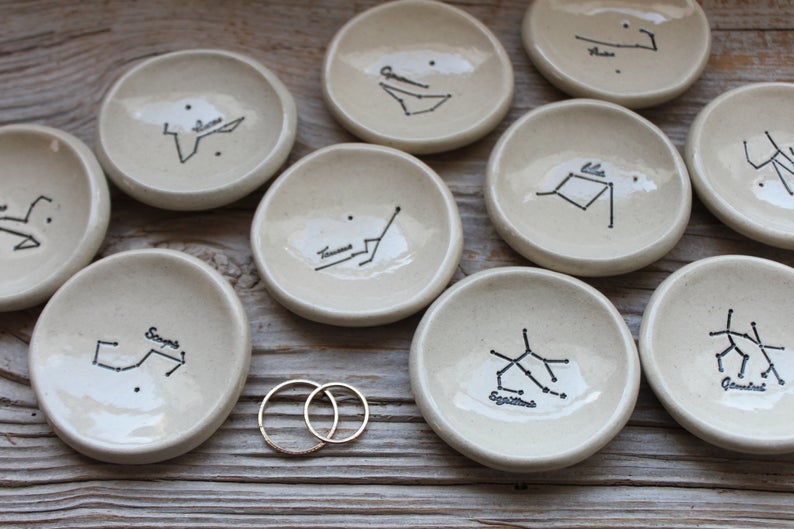 Tasha McKelvey Small Zodiac Constellation Pottery Ring Dish, $, available at Etsy