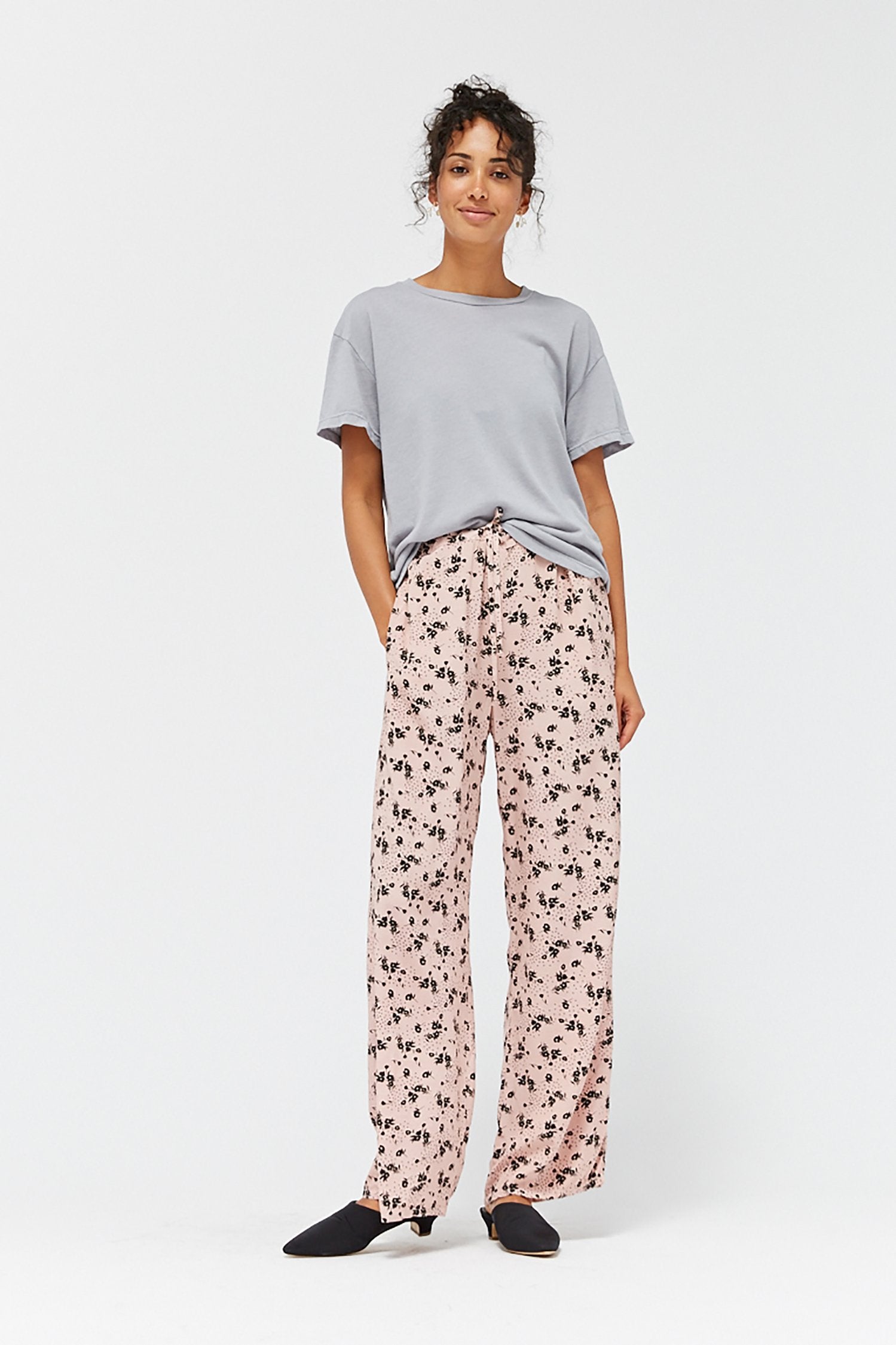 I mix it up! I make sure I maintain my usual morning routine but these days I'm changing from pajamas to loungewear and sweats instead of my usual workwear. Today was a little different because I had to do a presentation over Zoom but ultimately my WFH "professional" look amounts to my typical neutrals (with a few more wrinkles because I don't want to steam) and no shoes (I put on socks if I get cold). My top is a silk Equipment button-up, my slouchy, high-waisted pants are from Zara.