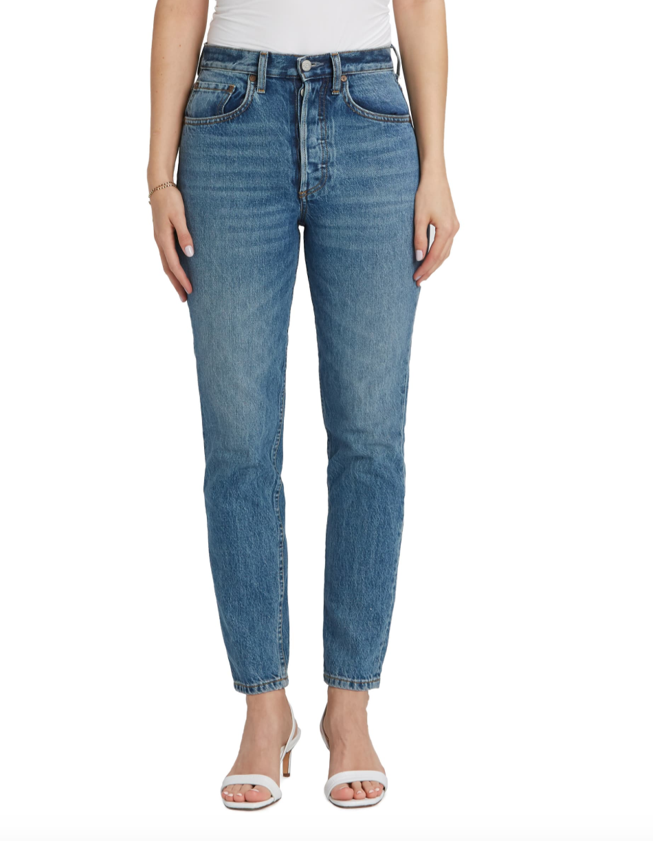 One way to shop denim sustainably is find a brand that repurposes. London-based ELV Denim (short for East London Vintage, and a nod to where the dungarees are manufactured) is on the pricey side, but we swoon over the brand’s tonal, re-worked styles. Isn’t the investment worthwhile if this is the only pair of jeans you wear for the rest of the summer?