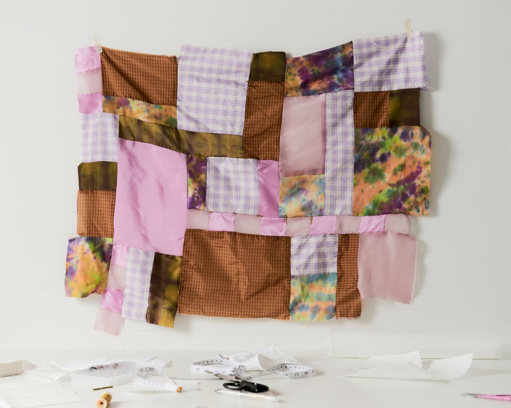 Feeling a little helpless, I found myself starting on a small quilt from some scraps I had at my studio. Sewing together the small pieces of fabric, one at a time, is so gratifying. I think because the majority of my work is done digitally, creating a tangible object has helped me gain the tiniest sense of control in coping with the mounting anxiety of this whole situation. Seeing this piece closer to being finished brings me some joy. I photographed it at my small studio space here in San Francisco that I thankfully still have access to.