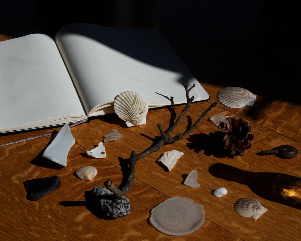 Throughout my life, I’ve always collected shells and sea glass at every beach I go to. I grew up in California, so beachcombing was a frequent activity in my family (my mom has the best collection of all time). In this photograph, I selected a few of my favorite shells, sea glass, tile pieces, and other found objects. Looking at them brings me comfort and reminds me of home.