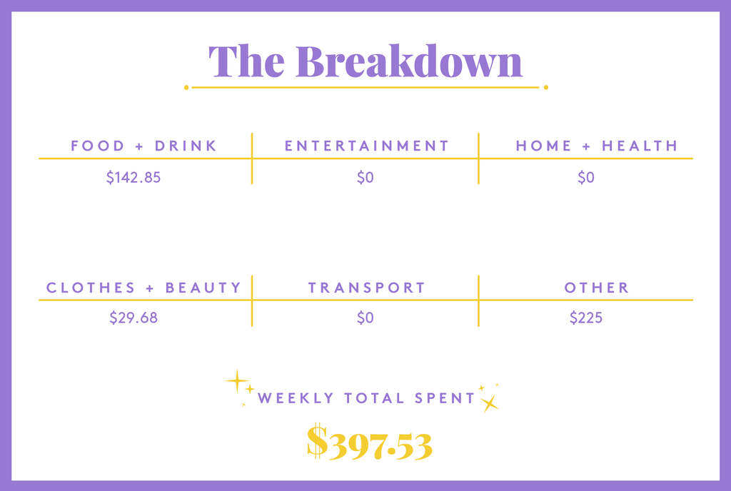 This week an Analyst working in Government Consulting who makes $72,000 per year and spends some of her money this week on moisturizer.
