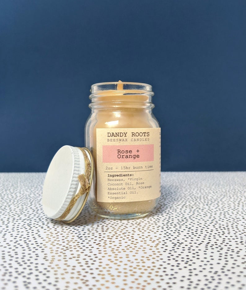 DandyRootsBoutique 2oz Beeswax Candle Handpoured Mini Mason Jar, $, available at Etsy